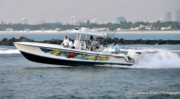Controlled Chaos is a 31 Contender that is just over 34 feet in length and 9 feet 8 inches wide. The boat was completely gone through in the 2020 and was repowered with 2 new Suzuki 300 horse power outboards. We also replaced all the pumps, steering, safety equipment, lights, underwater lights, and electronics at the same time. Controlled Chaos has a second station on the t-top with steering that is used for spotting Mahi and other fish while running. The boat is rigged with out riggers for trolling, a downrigger for live bait fishing, plugs for electric kite reels, and lots of rod holders positioned for high speed trolling, trolling, and live bait fishing.